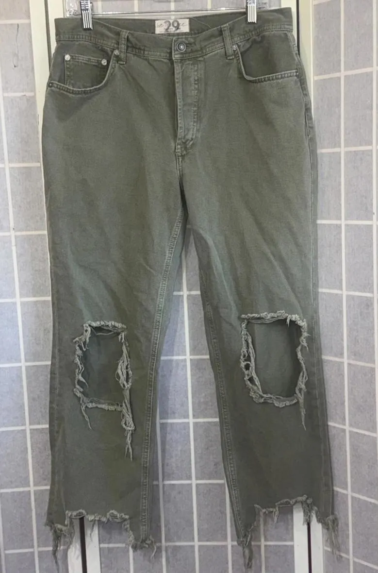 Free People We The Free Maggie Cropped Jeans Distressed Ripped Green Frayed Hem Size 29 in good preo... Show more