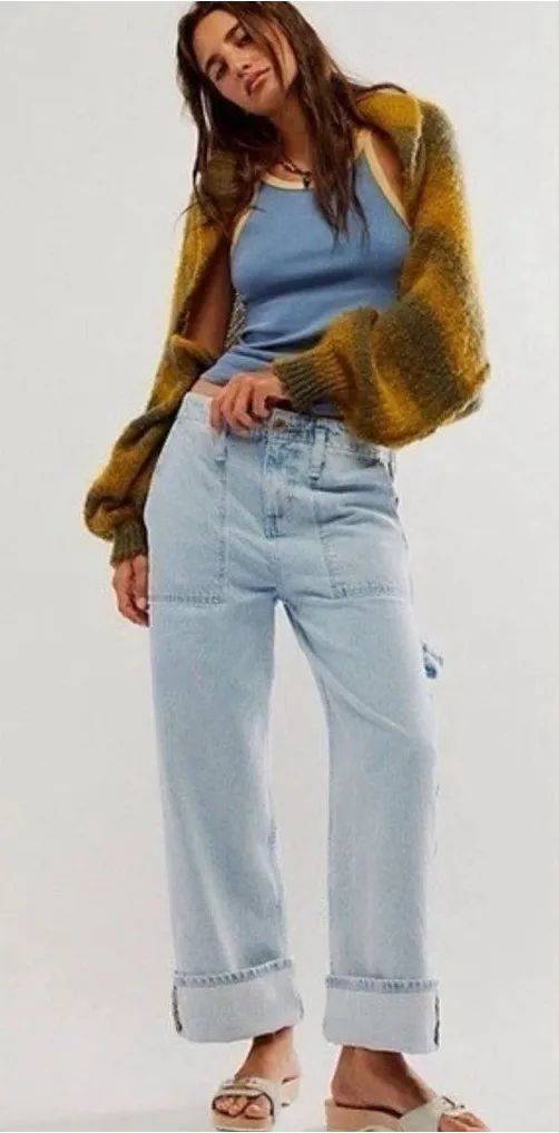 NWOT. Size 27. Light wash. Waist 15” Rise 11.5” Inseam 28” Leg opening 9”