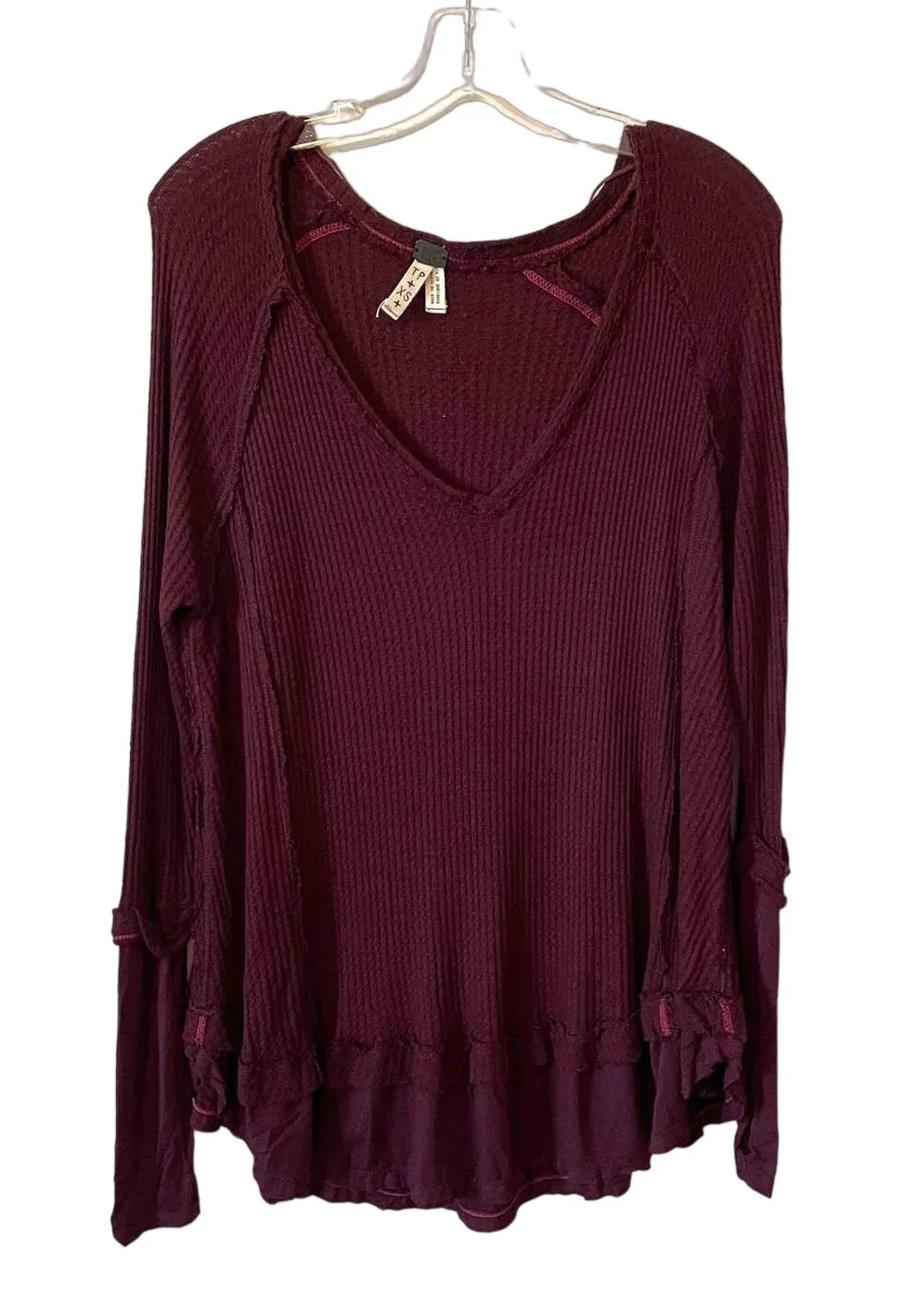 Free People We the Free Oversized V-Neck Thermal Shirt Purple Plus Size XS Purple Wine Color Size XS... Show more