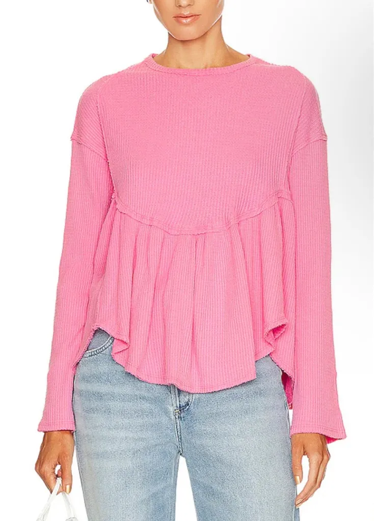 Charming pink babydoll top by Free People. Ideal for casual wear.
