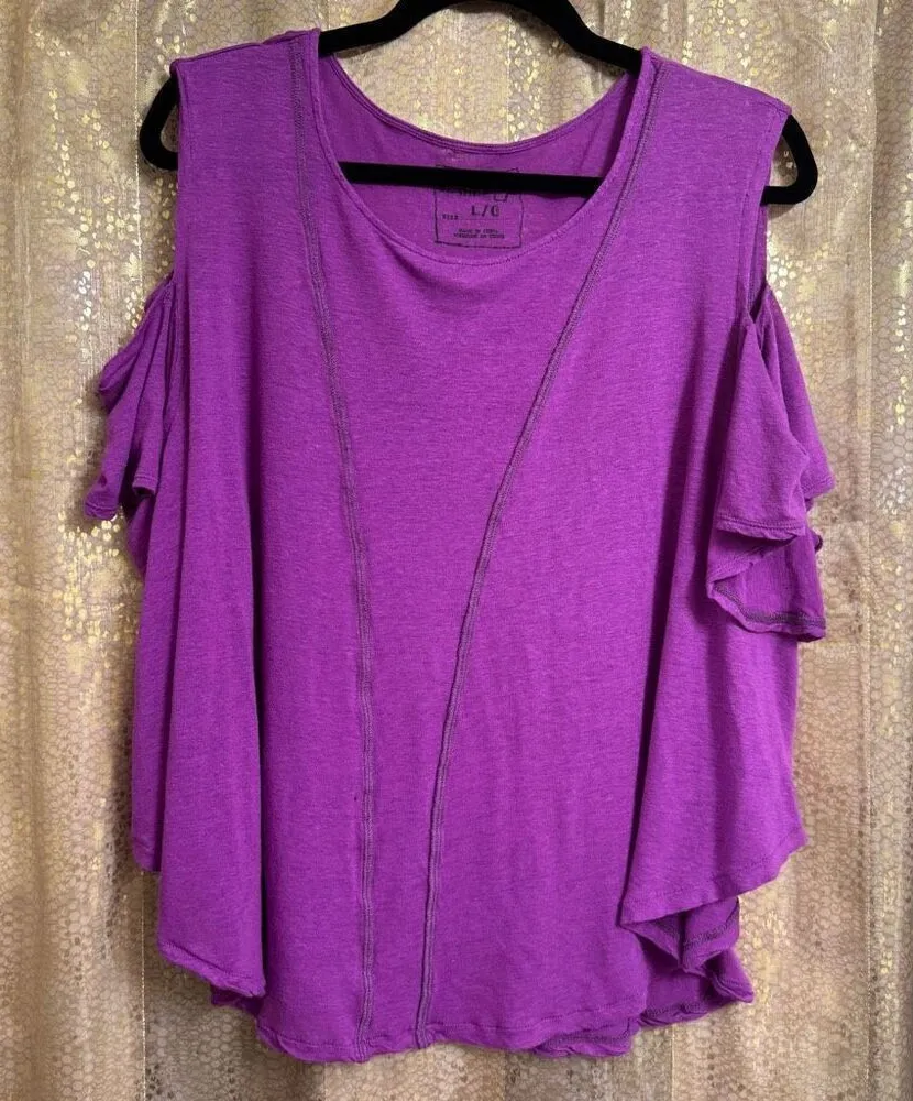 Free People We The Free Purple Rayon Linen Blend Cold Shoulder T Shirt Large Good condition for th... Show more