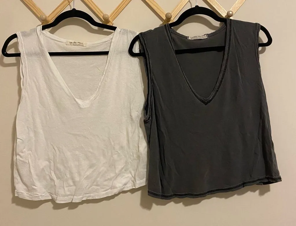 Free People Size small Set of 2 One gray. One white Light weight material Muscle tank style Deep... Show more