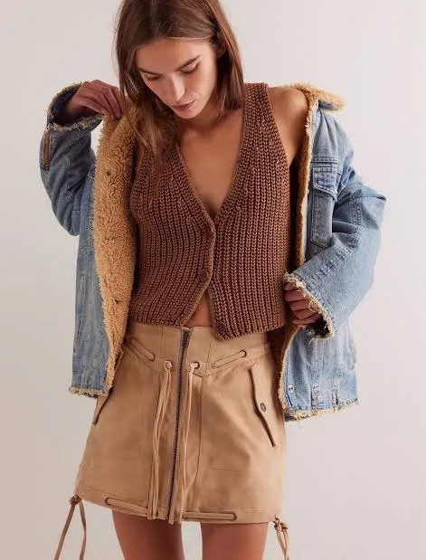 This mini a-line skirt from We The Free features a mid-rise fit, relaxed silhouette, front zip-up cl... Show more