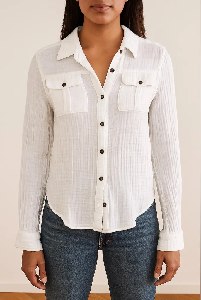 This long sleeve top is in good condition with no flaws! White gauze material. Rounded hem. Make a... Show more