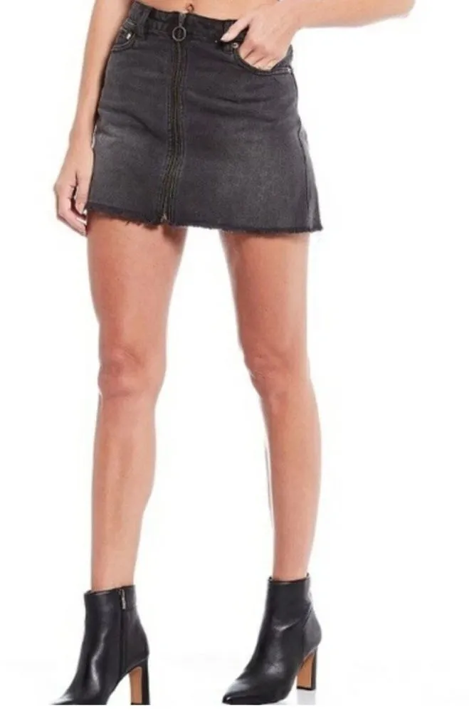 Chic and versatile black denim mini skirt. Perfect for any occasion.