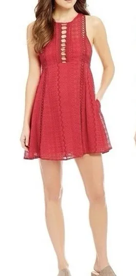 Details: • Brand: Free People • Style: crochet, mini, side zip, lined • Color: Red • Size: 0... Show more