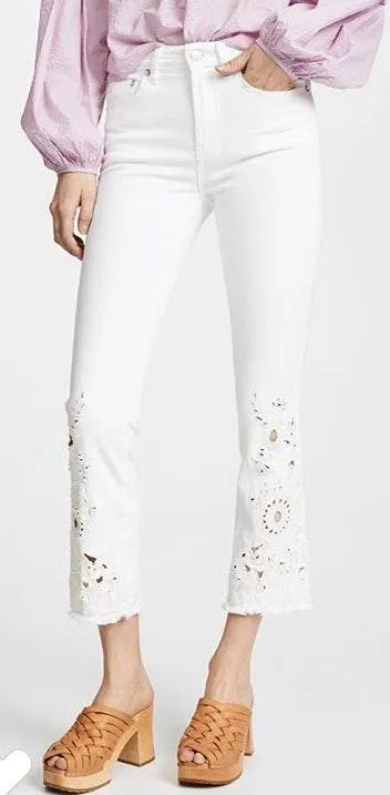 Free people white cutwork jeans. Never worn only selling because a little too small