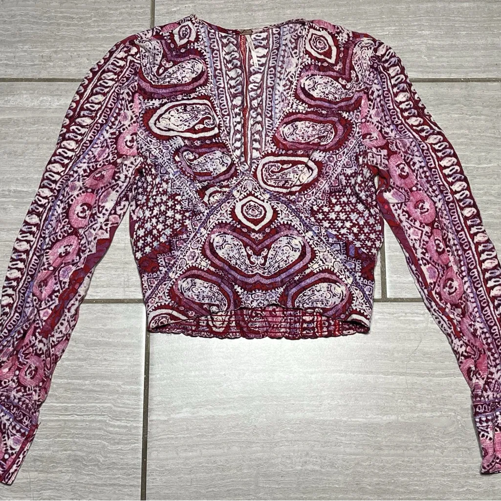 The Free People Wild and Free Boho Paisley Long Sleeve Smocked Top in size XS is a stylish blouse pe... Show more