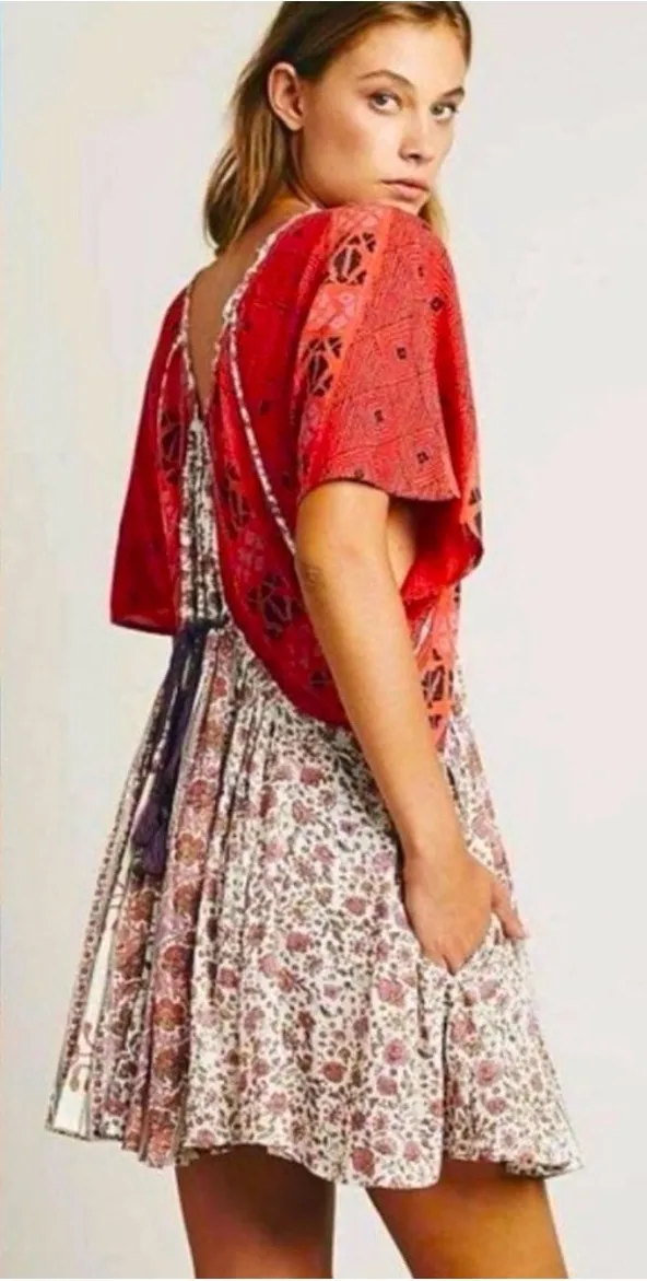 Free People Wild World Flutter Sleeve Mini Dress XS Festival Boho Red Flowy Review Photos for exce... Show more