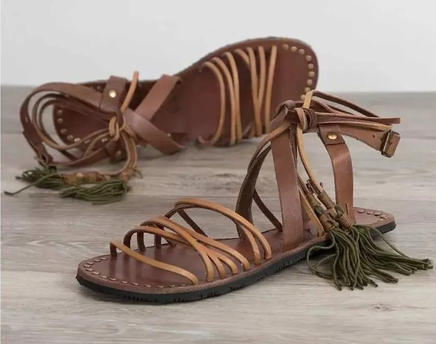 Keywords: Free People sandals, gladiator sandals, leather sandals, tassel sandals, bohemian sandals, strappy sandals, women's sandals, size 38, brown sandals, festival sandals, summer sandals, casual sandals, ankle strap sandals
