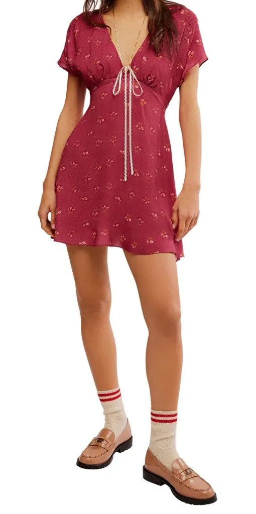 Free People Women Size M Everyone's Favorite Floral Minidress Earth Red Combo. New with tags see pi... Show more