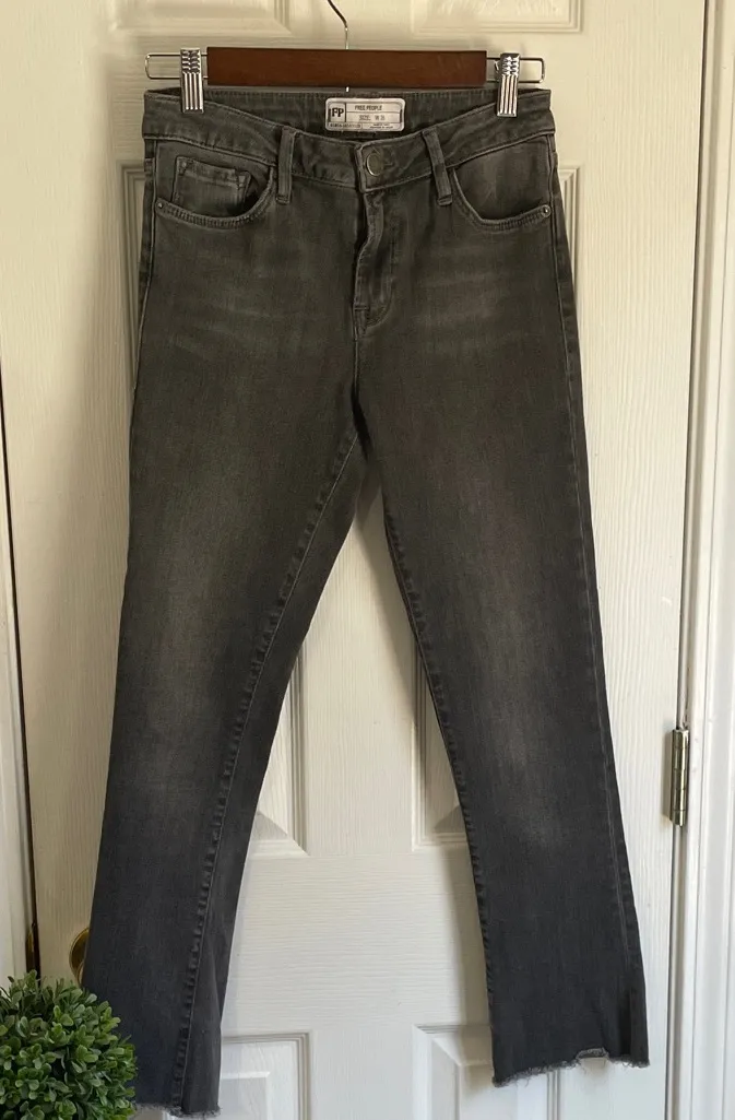 Chic gray straight leg jeans. Perfect for casual wear. Comfortable and stylish. Inseam is 26.5 inche... Show more