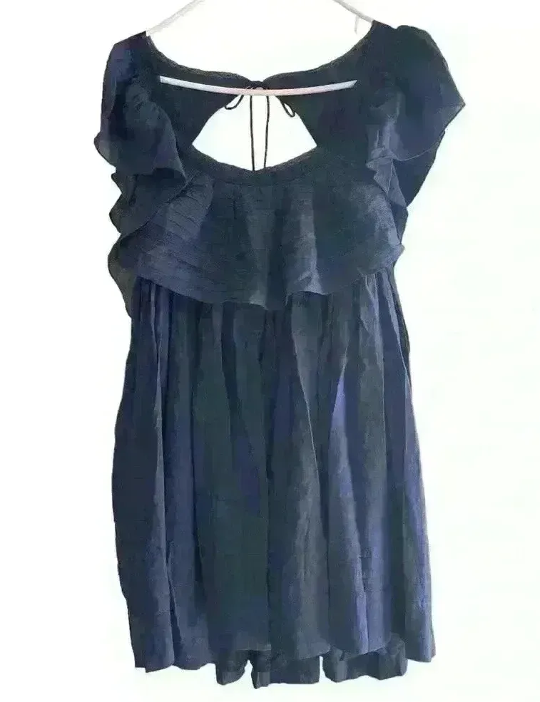 Free People Women's Hailey Cotton Ruffle Short Sleeve Mini Dress Navy Size M $148 NWT.