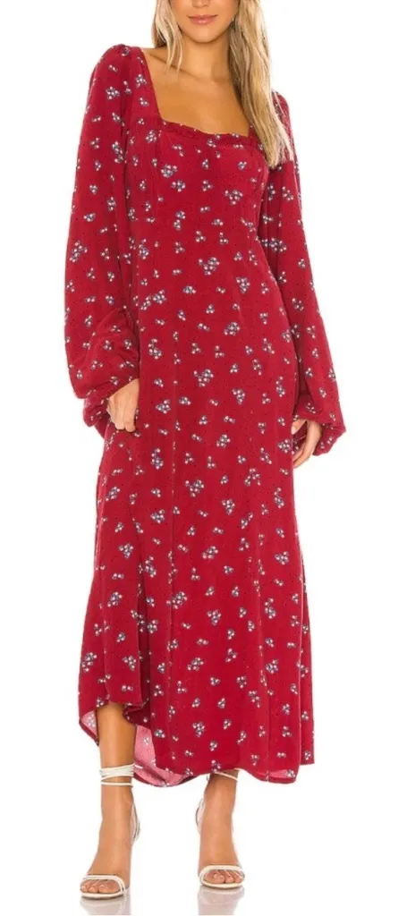 Free People Women’s Iris Long Balloon Sleeve Red Blue Floral Midi Dress Size Small Good preowned c... Show more