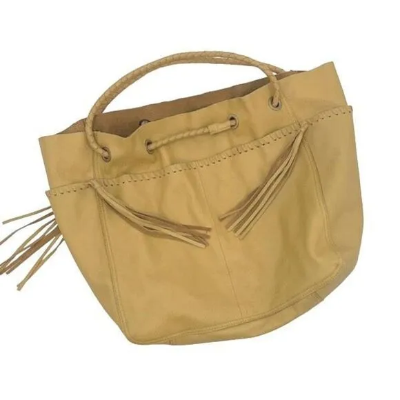 Free People Womens Jolene Cow Leather Fringe Woven Strap Tote Handbag Yellow Tan OS Features: Brand... Show more