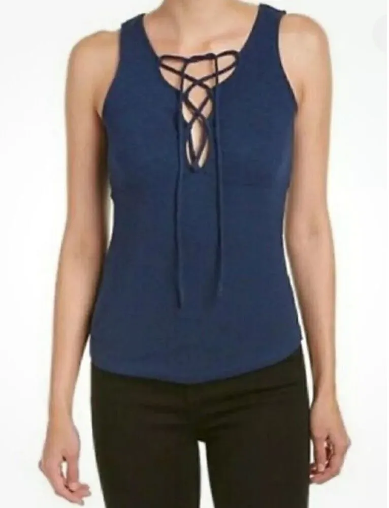Free People Womens Ribbed Emmy Lou Lace-Up Stretch Tank Top Black Small **Stock photo just for fit... Show more