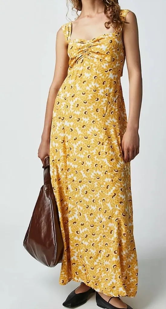 Free People Women’s Rosalee Midi Dress Yellow Combo Sunflowers Floral Print Size Medium Great preo... Show more