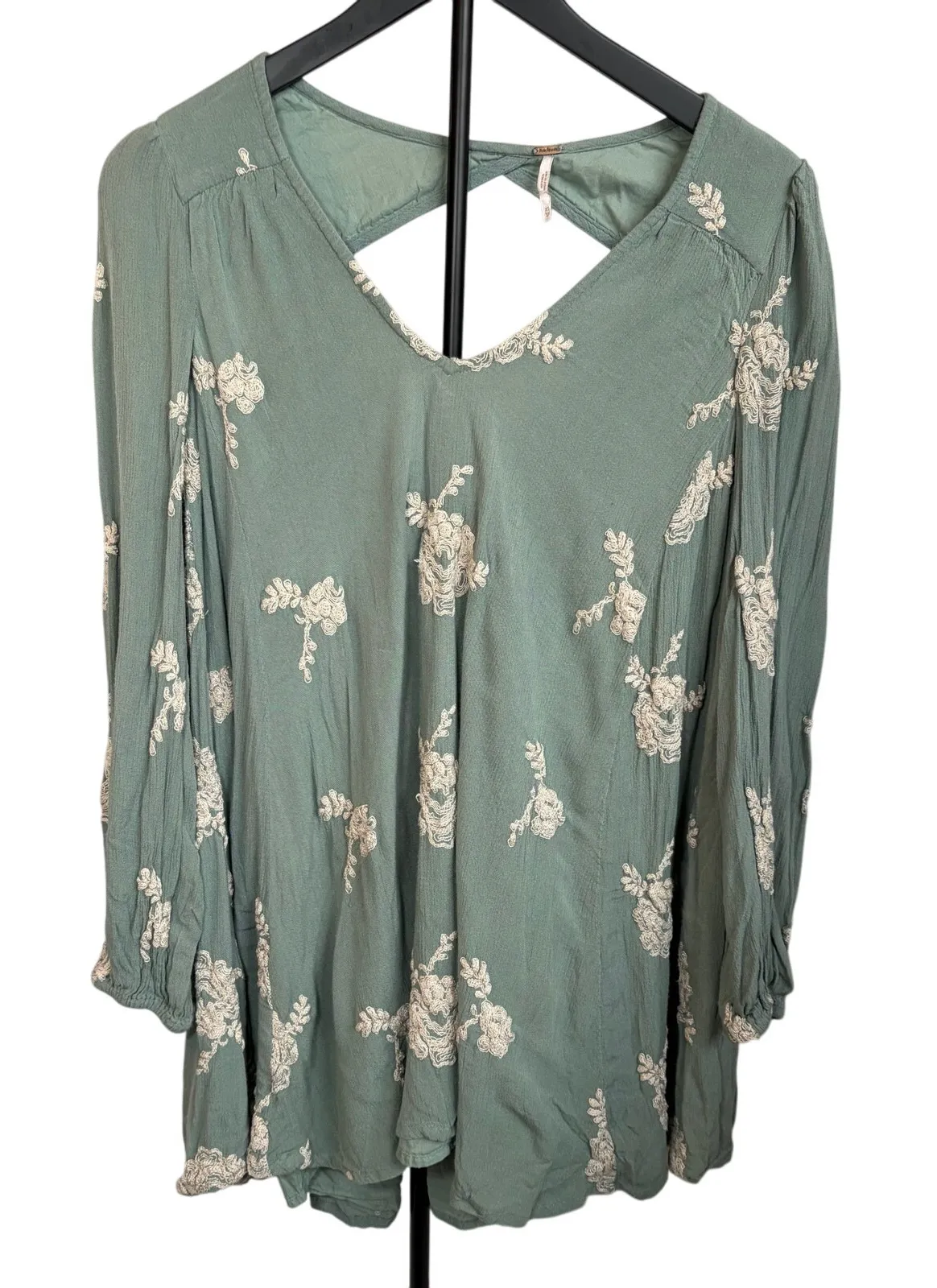 Free People women’s sage green Emma embroidered tent dress. Size XS. Boho. Cream flower embroider... Show more
