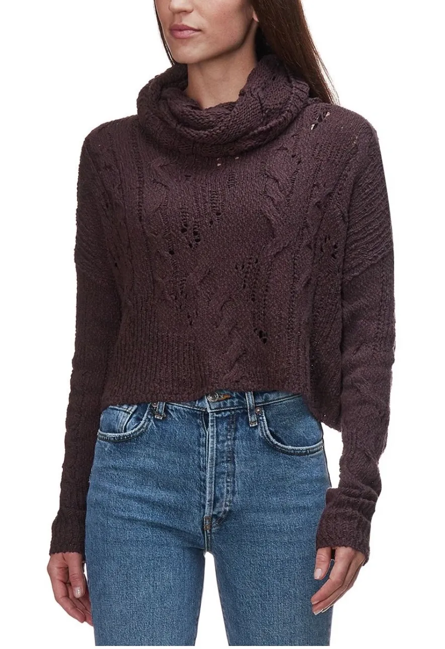 Dark brown cable knit cropped turtleneck sweater from Free People. This cozy knit features intricate... Show more