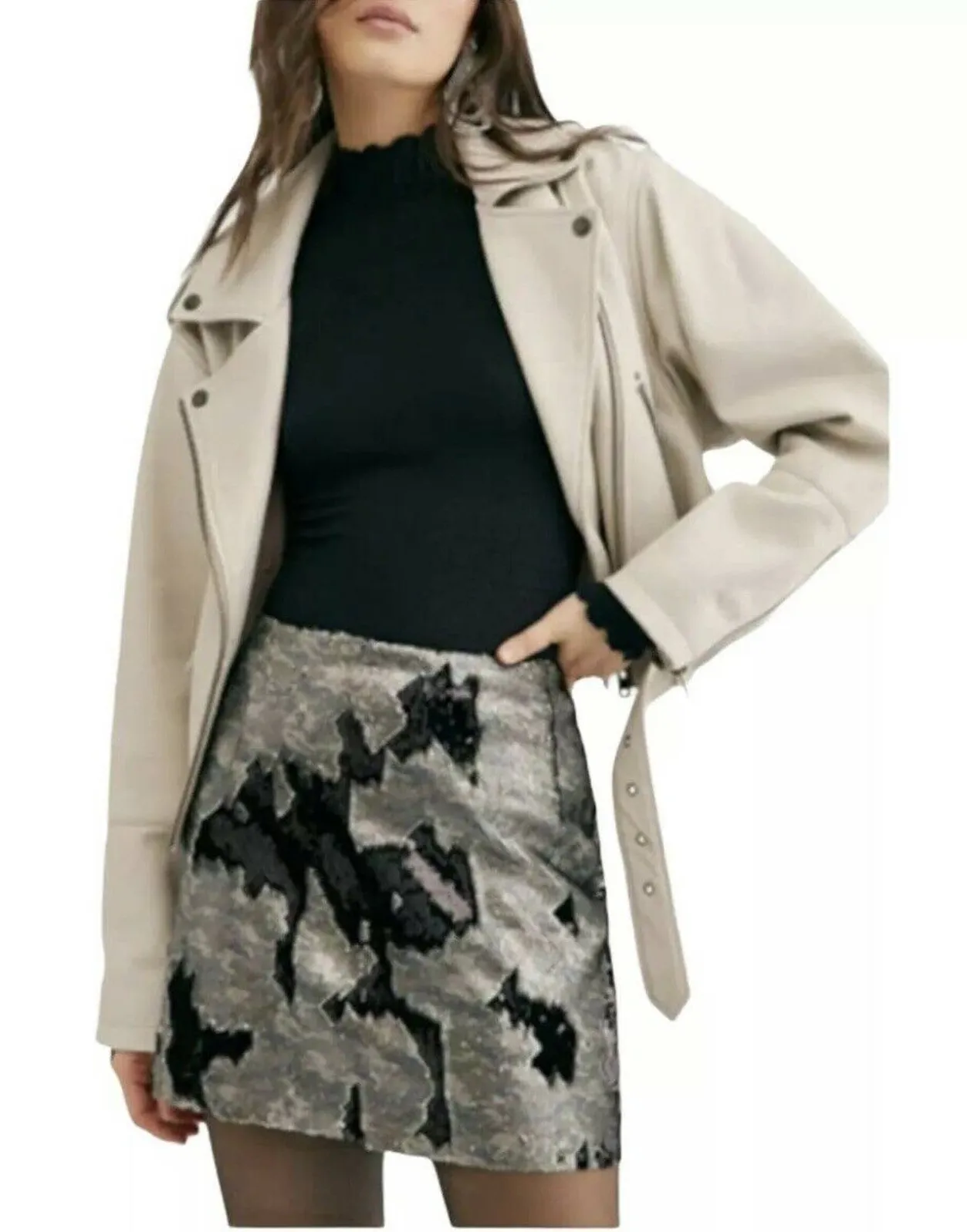 Free People Women's Skinny Sequin Studded Mini Skirt Camo Size 10 F19R08506 New. All over sequins t... Show more