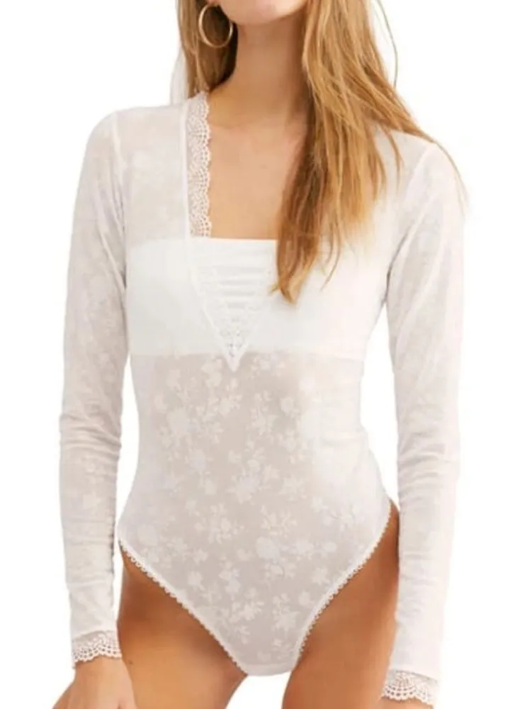 Free People Women’s XS Babes in Bandeaus Bodysuit White Long Sleeve Lace Sheer Brand: Intimately Fr... Show more
