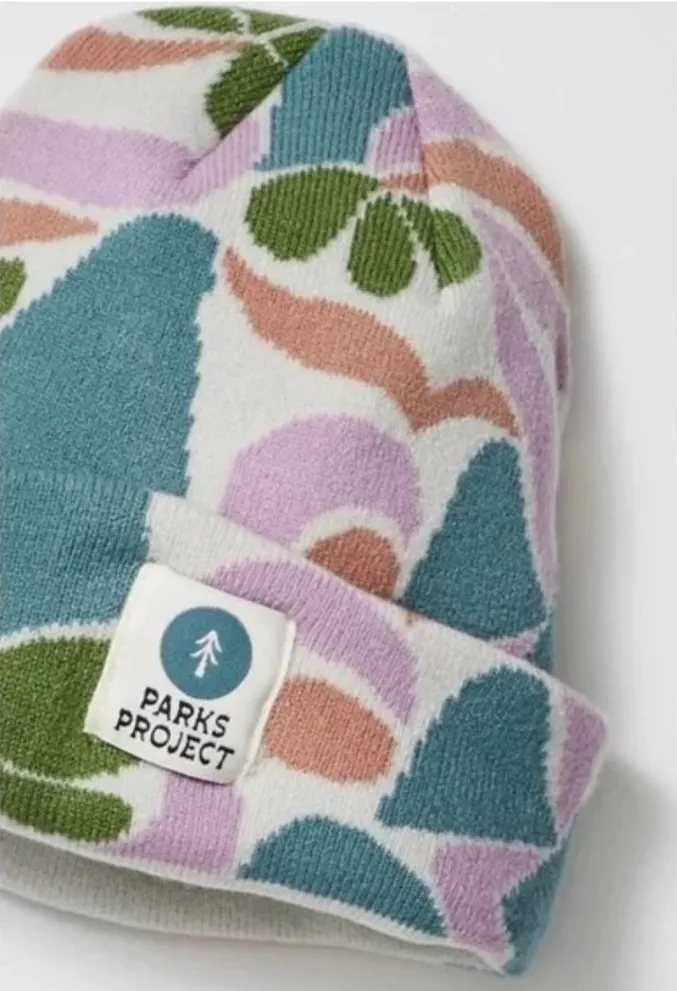 Brand new Fun and cozy beanie by Parks Project. Features green, pink, and blue patterns. Perfect fo... Show more