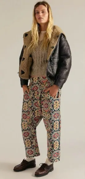 Free People We The Free Lunan Crop Harem Cord Printed Jeans NWT Size XL Laying Flat / Approxima... Show more