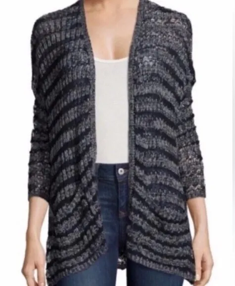 Really cute Free People Last Night linen blend knit black and white striped cardigan size extra smal... Show more