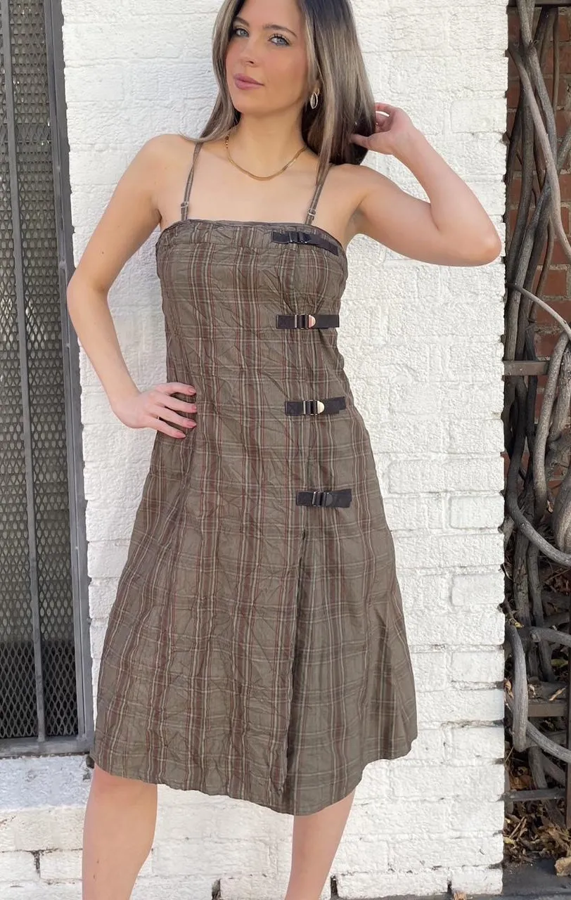 Y2k Triple Five Soul Brown plaid midi dress with buckle straps sz xs - $78 - From Packrat