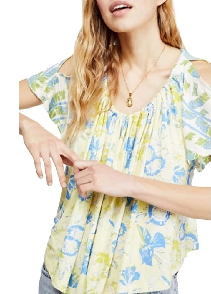 This blouse by Free People is NWT! It is in a gorgeous allover floral print in a bright and cheerful... Show more
