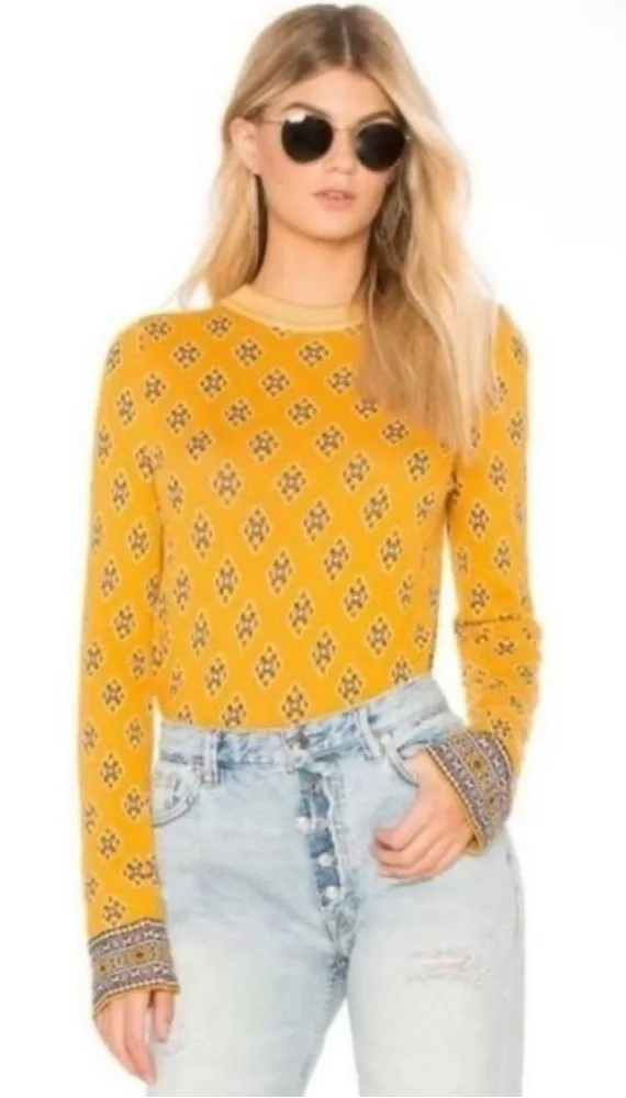 Good condition Size XS Crewneck Color mustard/brown Knit fabric Ribbed neckline 59% rayon,23% co... Show more
