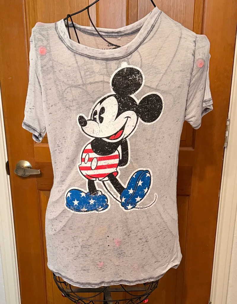 Fun Mickey Mouse design burnout tshirt with stars and stripes. Soft and stylish for man or woman.... Show more