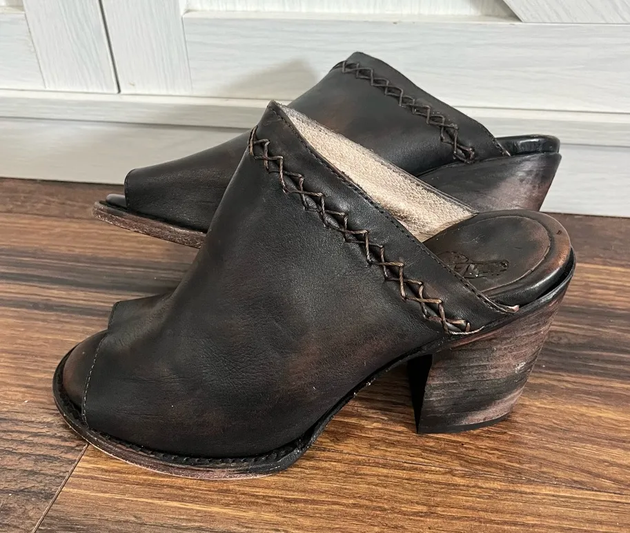 Freebird Bambi / Leather Peep Toe Mule / Heeled Sandal / 7 Brown - $100 - From Marteeka