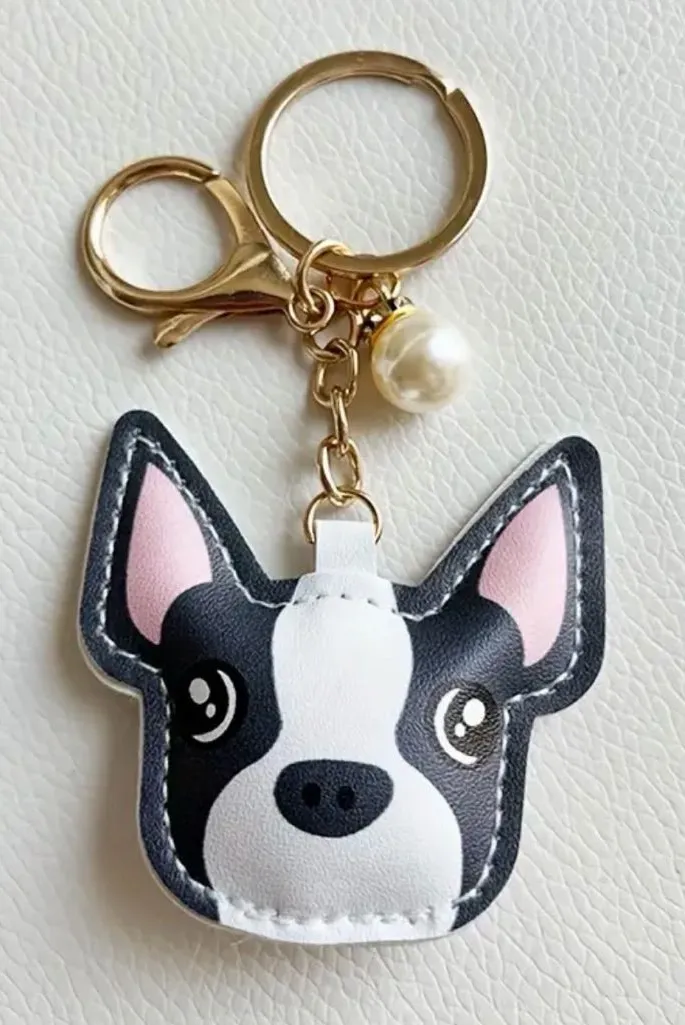 Adorable French Bulldog keychain featuring a faux-leather dog face charm with pink ears and glossy c... Show more
