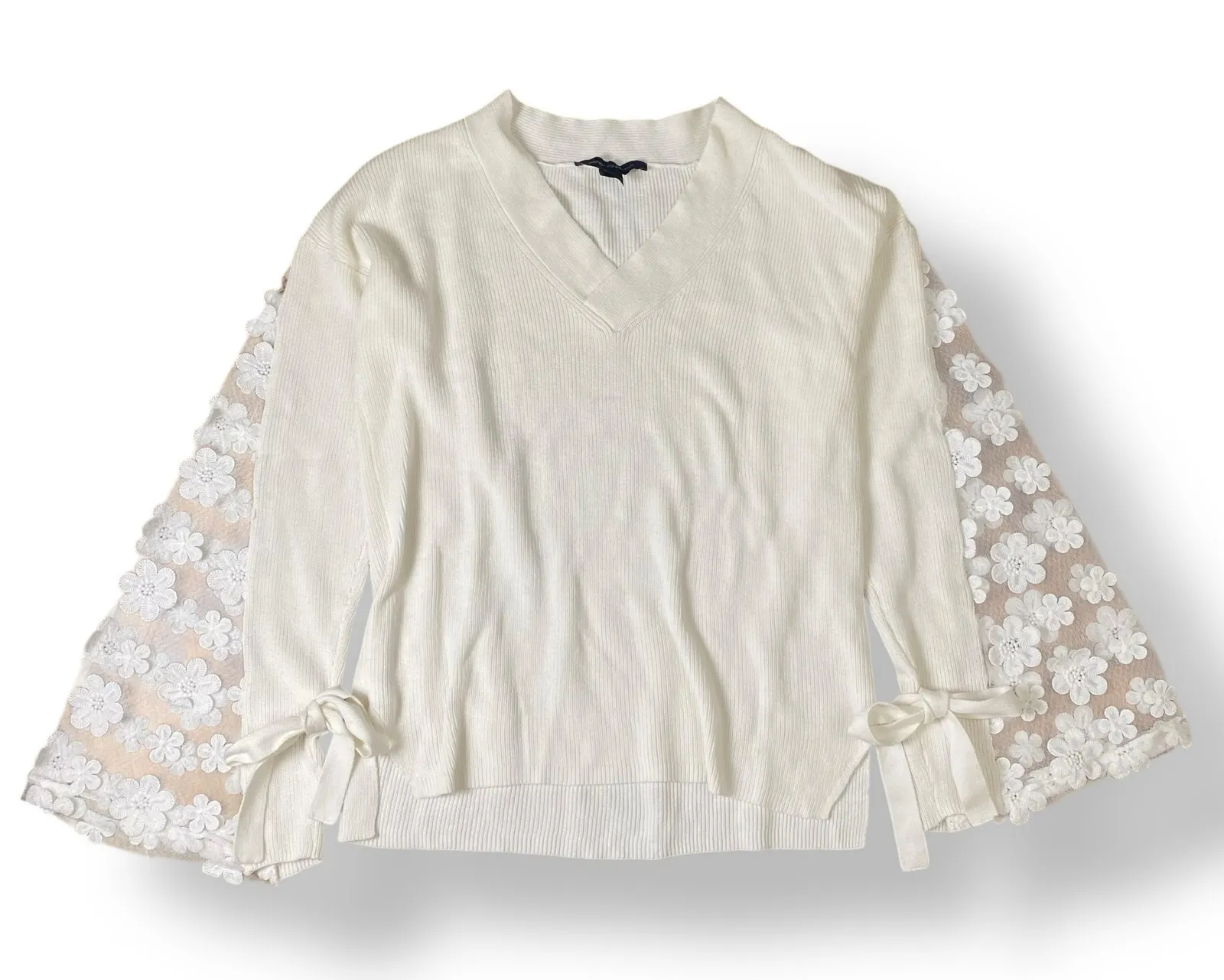 -French Connection Cotton Lace Bell-Sleeve Top Womens Size XS White -Preowned in excellent condition... Show more