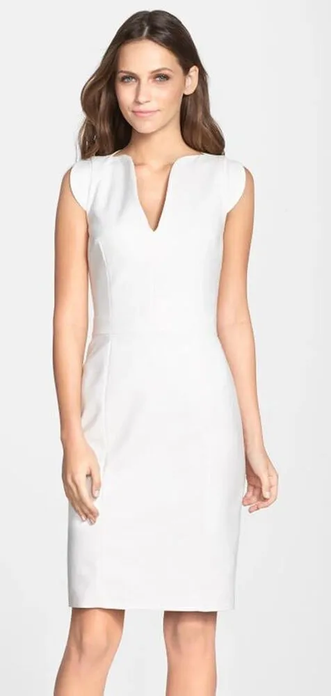 Structured seaming shapes a flattering figure-following silhouette for a sleek stretch-knit sheath t... Show more