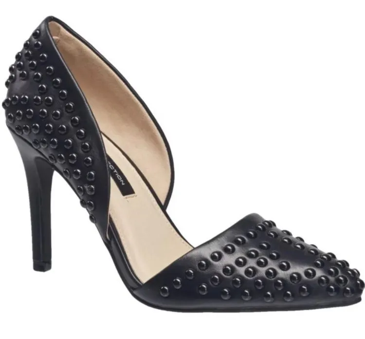 French Connection Studded Heels Size 7.5. Black vegan leather. Slip on with 3” heel. Clean and in ex... Show more
