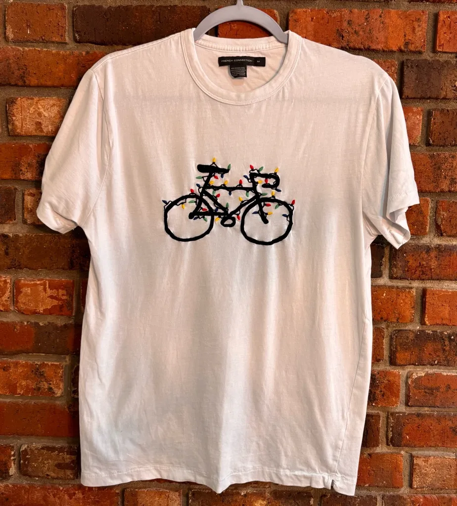 French Connection womens Christmas Holiday bicycle lights short sleeve t-shirt white M