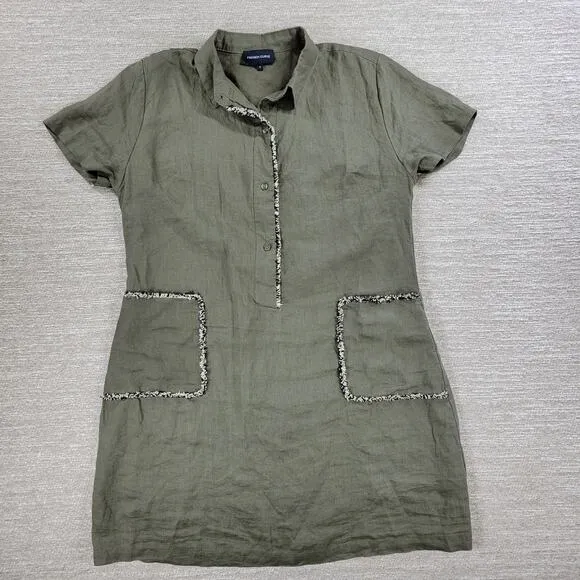 This women's medium dress features a unique lagenlook design with stylish fringe detailing, perfect for a relaxed yet chic vibe. Crafted from comfortable linen, this tunic dress is ideal for warm weather and can be dressed up or down for any occasion. Measurement: 23" pit to pit x 35" long Condition: Excellent Pre-Owned Brand: French Curve Size: M Color: Olive Green Material: 100% Linen Thanks for shopping with me today!! I ship on orders received by 3pm each day USPS is open. Most items are lovingly used so may show appropriate signs of wear but are clean and stored in a smoke free environment. I do my best to make note of any irregularities with an * and most are fixable as I don't want to sell you garbage but please feel free to inquire:)