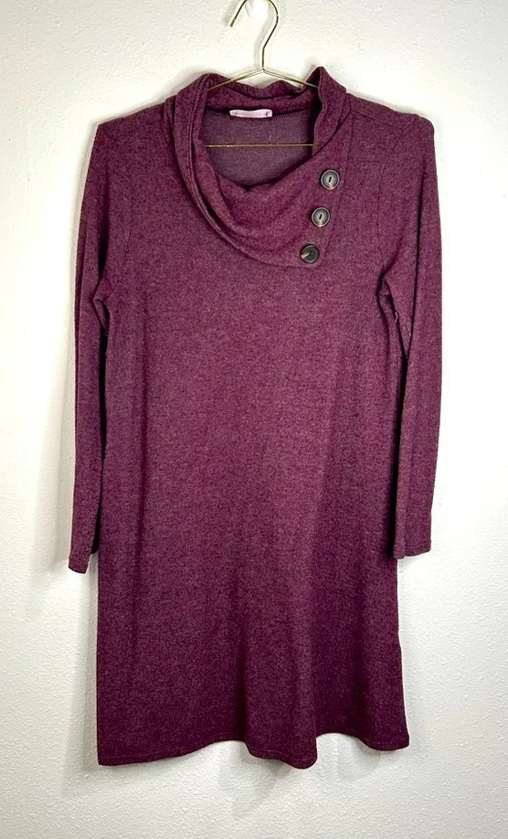 Description: This stylish French Grey sweater dress is perfect for a cozy and chic look! Featuring a cowl neck with decorative buttons and a soft knit fabric, this dress is ideal for fall and winter. The burgundy color adds a pop of sophistication, making it perfect for casual outings or workwear. Pair it with boots or leggings for a complete look! • Brand: French Grey • Size: Large • Color: Burgundy • Style: Sweater Dress • Neckline: Cowl Neck with Buttons • Sleeve Length: 3/4 Sleeves • Material: Soft Knit Fabric • Fit: Stretchy and Comfortable • Care Instructions: Machine Wash Cold Measurements (Approximate): • Length: 36” • Chest: 19” (unstretched) to 24” (stretched) Condition: • Pre-owned, in great condition #CowlNeck #SweaterDress #WinterFashion #CasualChic #BurgundyDress #ComfortableStyle #SoftKnit #CozyOutfit #WorkwearReady #FrenchGreyFashion