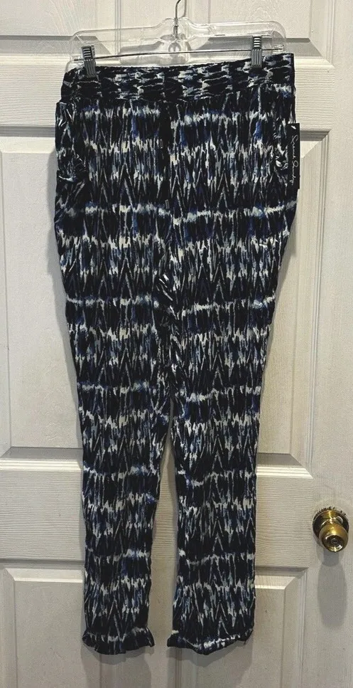 French Laundry Blue Geometric Design Straight Leg Casual Pants Beachy Large New‎ - $26 New With Tags - From Shayna