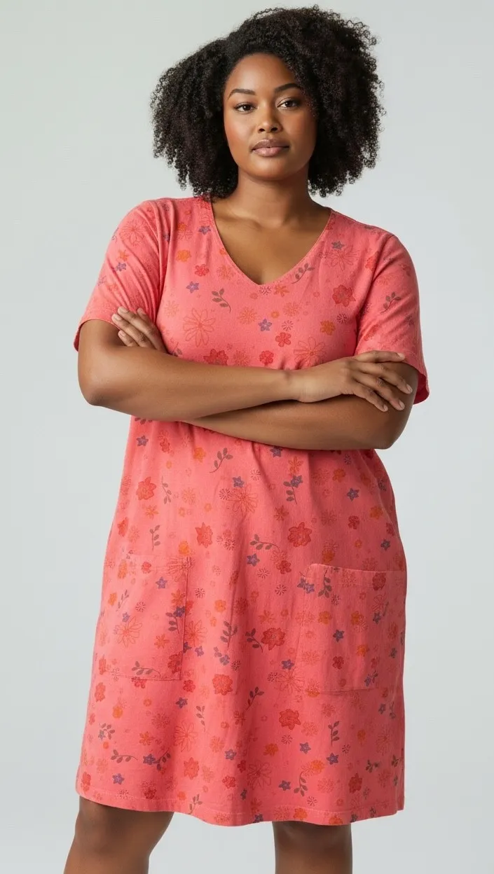 Fresh Produce Dress Womens XL Pink Floral Short Sleeve Cotton Casual Flaw Couple small spots on back Cotton Colors may vary by device. Measurements: Approximate and taken while hanging. Pit to pit 20.5 inches Length 39.5 inches AI model may be used to illustrate possible fit and look. Pictures of the actual item immediately follow At1274