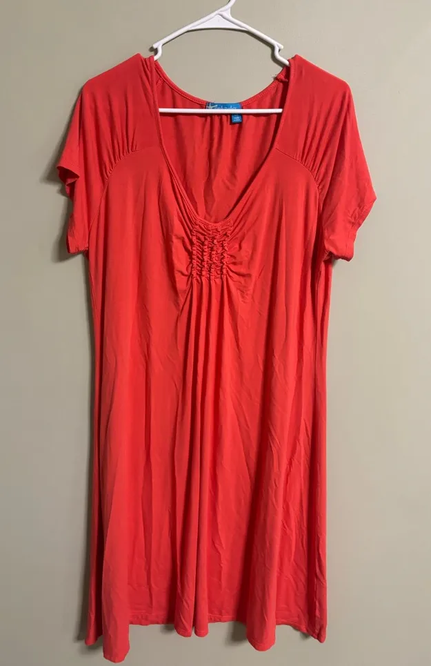 Fresh Produce Emma Swing Dress Coral Ruched V Neck Size XXL Short Sleeve USA Pink - $29 - From Ashlee