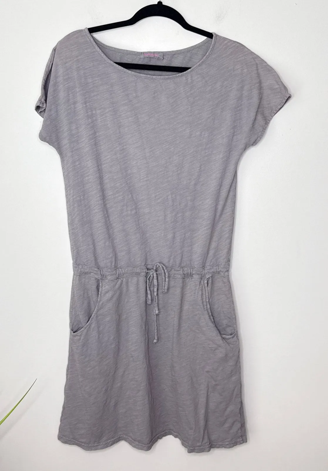 Fresh Produce Gray Slub Cotton Tie-Waist Blouson T-Shirt Dress Size Medium - drawstring tie at waist - front pockets - crewneck - 100% cotton - Style# 22256 APPROX. MEASUREMENTS: *Measurements are taken with item lying flat on table. Pit to pit: 21" Shoulder to hem: 40" * open to reasonable offers * ships next business day * pet-free and smoke-free home * all items washed, unless dry clean only or hand wash label. Please, wash to wear. * see pictures for details. Colors can vary on different devices.