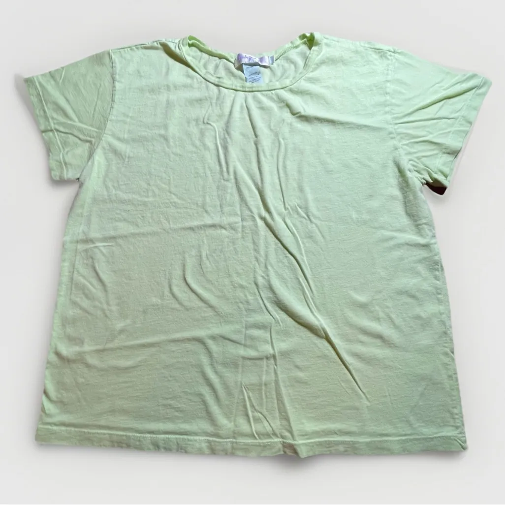 Pre-owned, in good condition. No holes or stains. Some light wear and wash fading consistent with age. Please review all photos for details. Fresh Produce women’s short sleeve T-shirt Size Large, made in the USA Soft 100% cotton in lime green Casual everyday basic, lightweight and breathable Perfect for summer, vacation, or layering Approximate measurements taken on top of garment laying flat and doubled when applicable Chest (pit to pit): 42 1/2” Shoulder seam to shoulder seam: 17” Length (shoulder to hem): 23 3/4” Armhole: 16 1/2” Fresh Produce, women’s, T-shirt, tee, lime green, cotton, large, USA made, summer, casual, coastal, minimalist, lightweight, basic