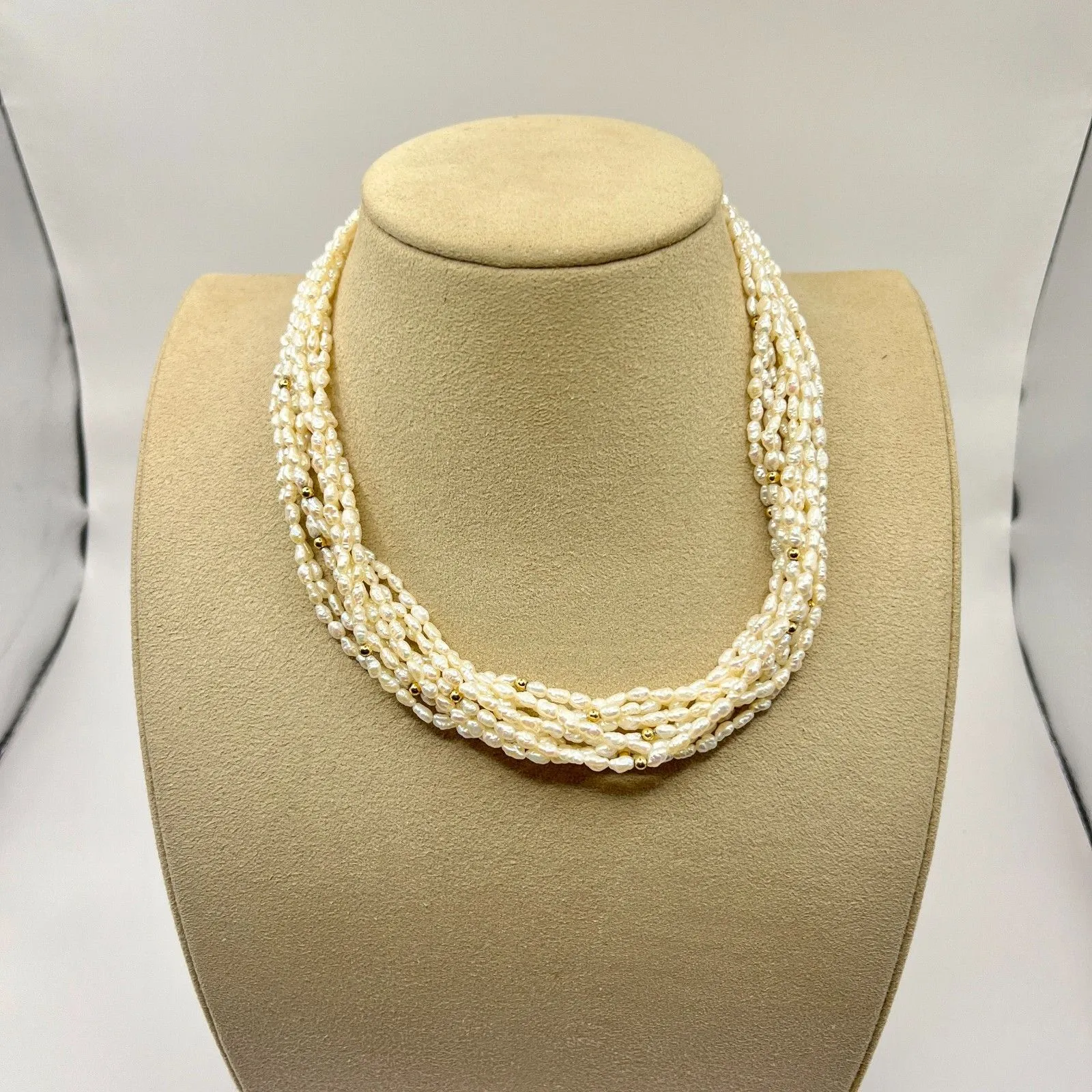 vintage pearl necklace from my jewelry box 10 strands freshwater pearls with 14K gold stations appro... Show more