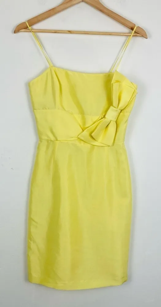 Frock by Tracy Reese lemon yellow silk dress. Spaghetti straps, oversized bow detail. Fitted with a... Show more