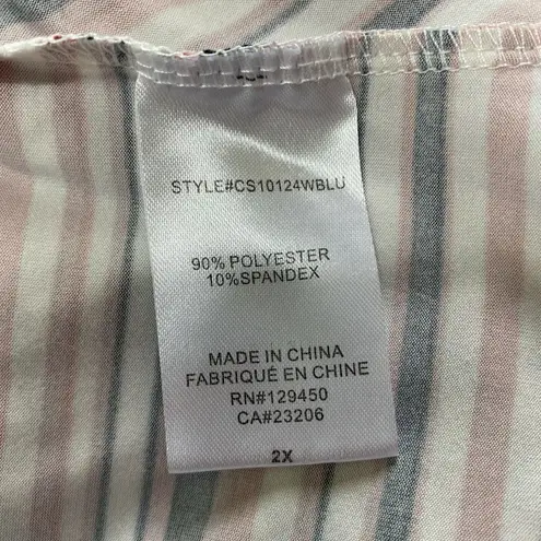 Como Blu Tunic Top 2X Stripe Asymmetrical Button Hem 3/4 Sleeve Multicolor Women's Plus Very good... Show more