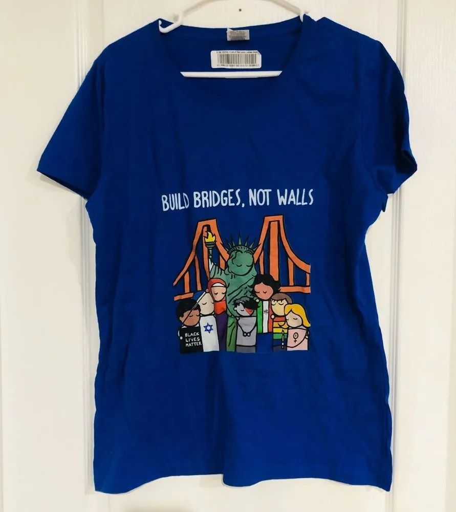 Fruit of the Loom Women's T-Shirt Build Bridges Not Walls Cotton Blue XL NWT Condition: New with Ta... Show more