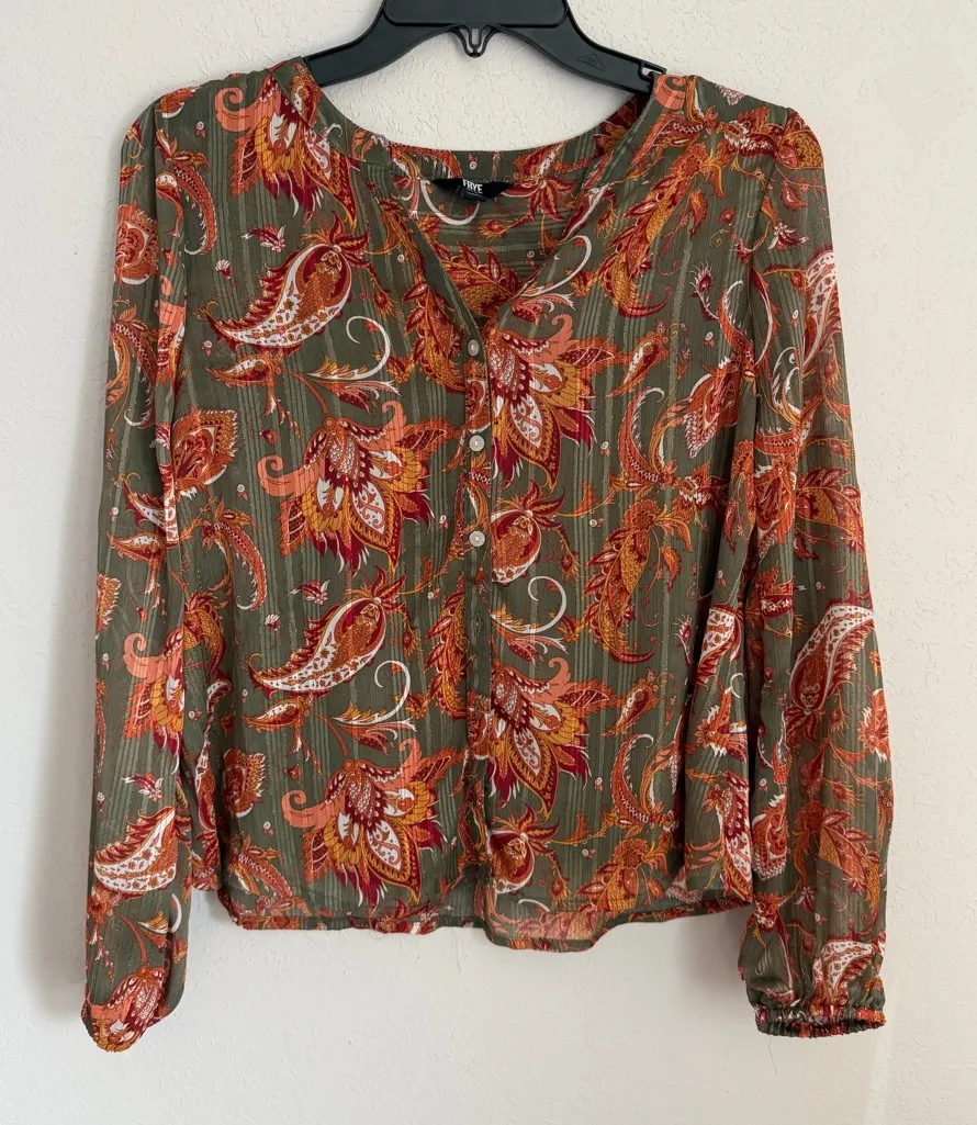 Good condition, Boho hippie retro layered lace ruffled sheer lace floral paisley flair wide vintage... Show more